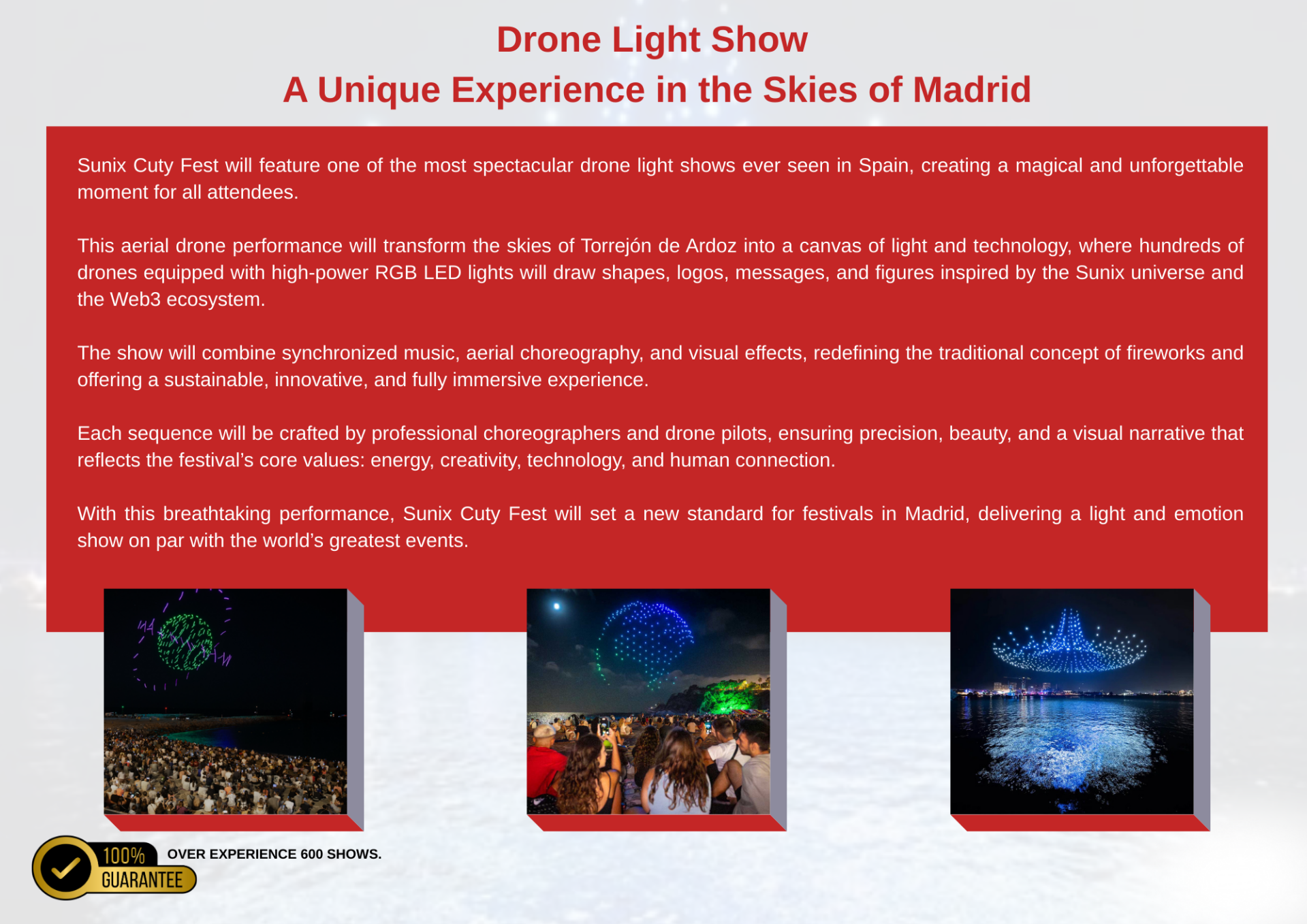 These are the events capturing the attention of all Europe, right here in Madrid, Torrejón de Ardoz. People travel from every corner of the world for a single purpose: to live an unforgettable experience. With SUNIX, we take it further connecting attendees to the power of Web3, creativity, and innovation, making every moment immersive, meaningful, and truly global.