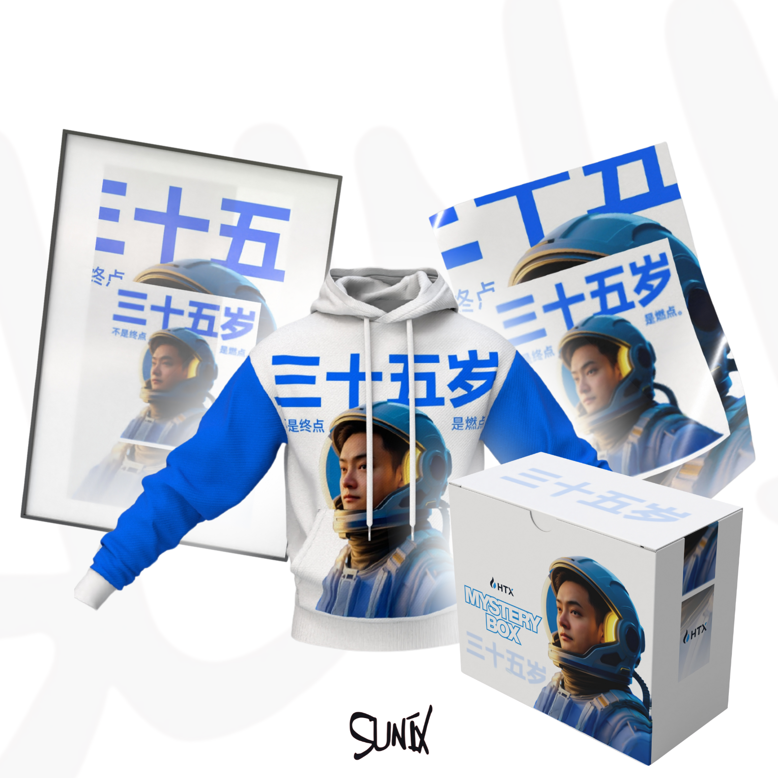 Inside, you may find exclusive physical pieces such as 1 of 1 garments never released to the public, prototypes, archived designs, special variants of hoodies or full tracksuits, and SUNIX accessories not available in the store. Mystery Boxes may also include collectible items like numbered and certified posters, framed limited-edition prints, physical certificates of authenticity, and conceptual pieces created exclusively for Mystery Boxes.